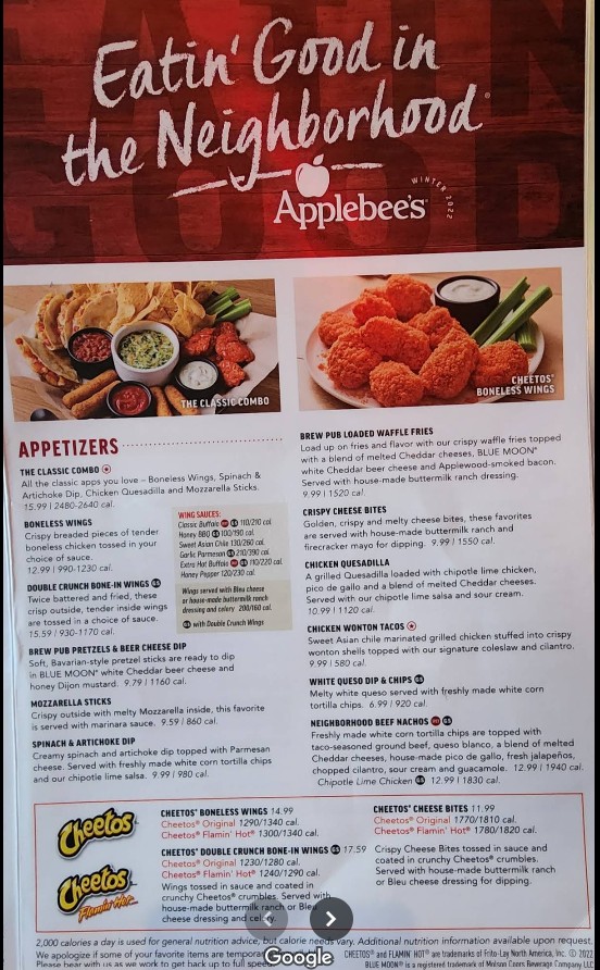Welcome to Applebee's Grill + Bar, your go-to destination for classic American comfort food in Alameda, CA. We are a full-service chain bar and grill dedicated to providing a casual, friendly atmosphere where you can enjoy great food and even better company. Our menu is packed with all your favorites, from juicy burgers and classic appetizers to sizzling steaks and delicious entrees. Whether you're catching up with friends, having a family dinner, or simply unwinding after a long day, we're here to serve you. Explore the complete Applebee's Grill + Bar restaurant menu today and find your perfect meal, available for dine-in, drive-through, and no-contact delivery!